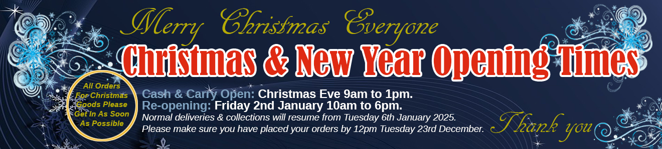 Our normal delivery schedule resumes on Tuesday the 6th of January 2026, Cash & Carry hours resume Friday 02 January